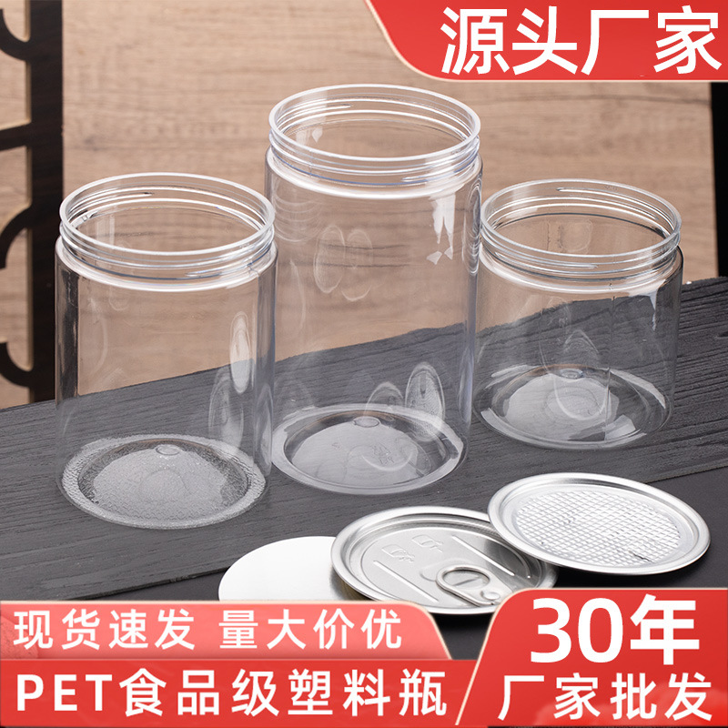 ソース工場pet透明プラスチック缶ナッツキャンディー缶シール食品包装缶多蓋オプションクッキー缶