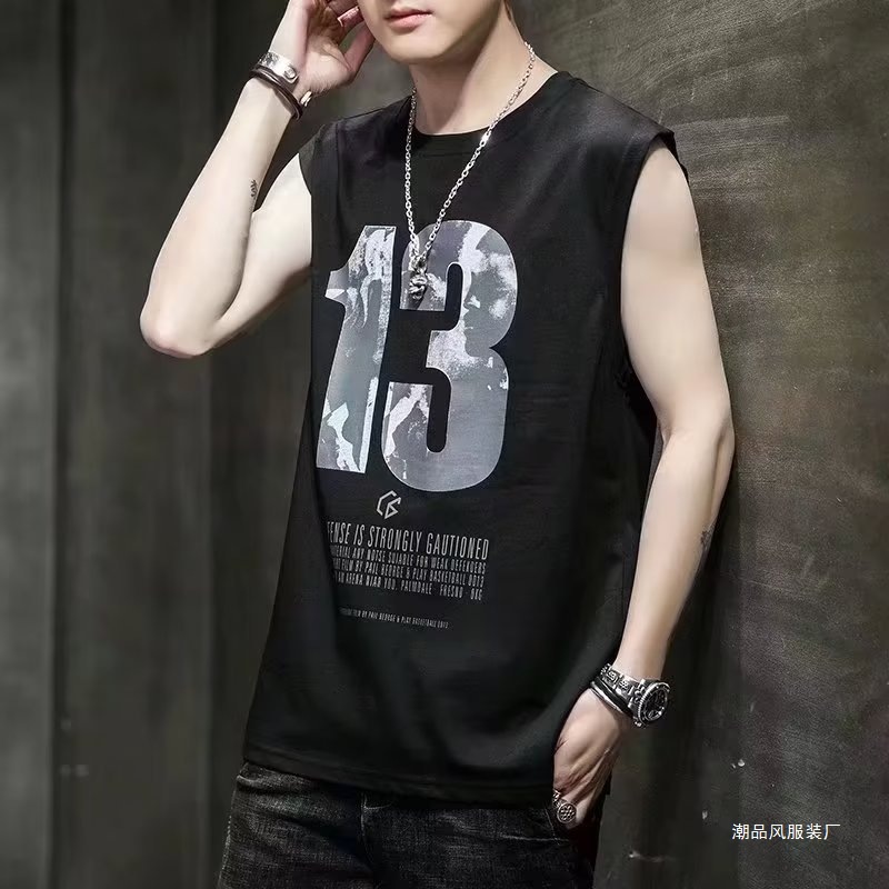 夏のファッション汗ベスト男性日本系韓国版カジュアル丸首tシャツ青少年ネット赤ゆるいノースリーブ肩