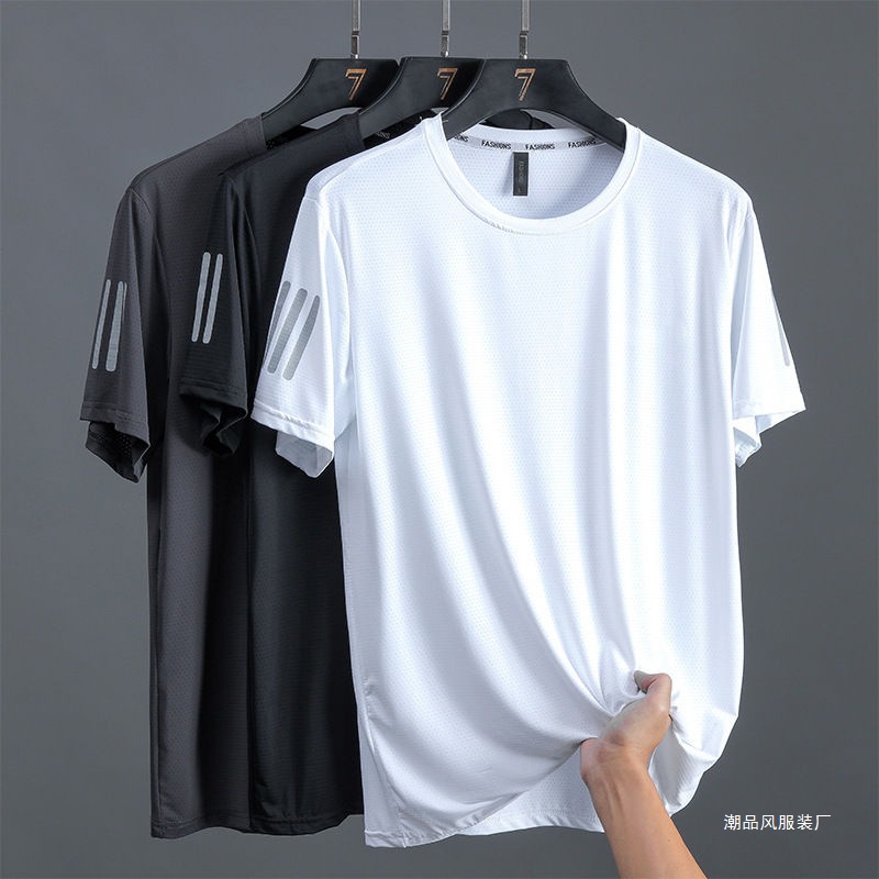 源メーカー夏氷糸tシャツ男丸襟速乾衣半袖薄い通気半袖上着男運動潮