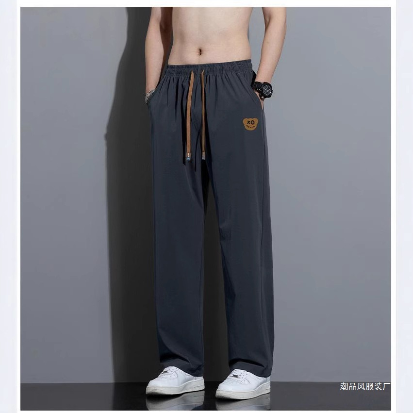 元のメーカーの氷糸カジュアルパンツ男性の夏の軽薄なストレートのゆったりしたワイドパンツのファッションブランド男性のズボン