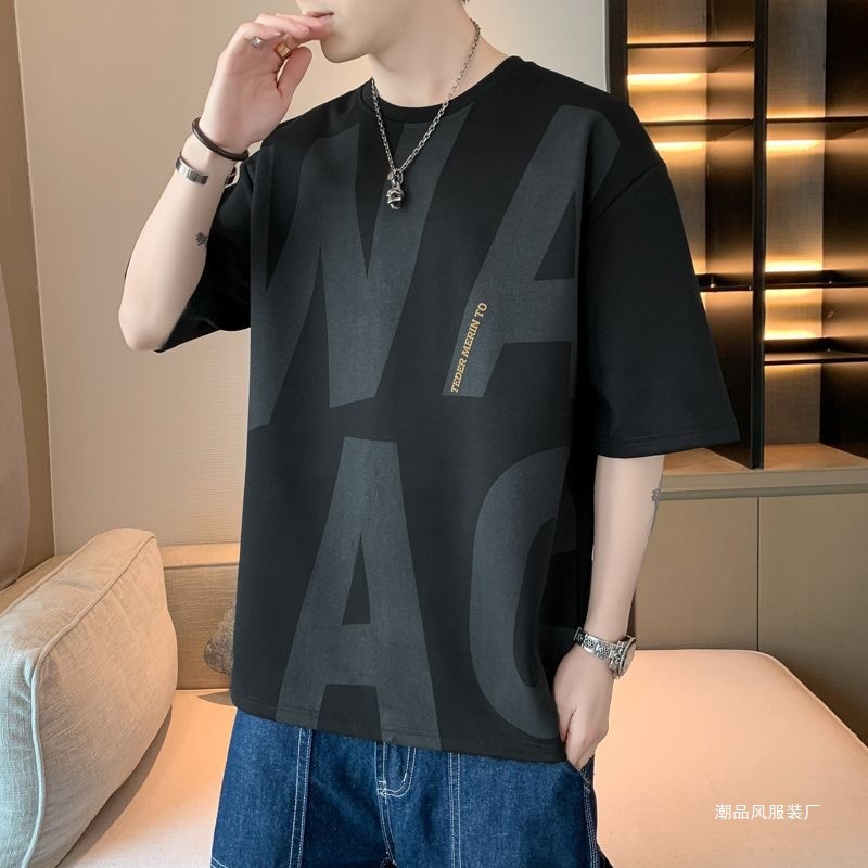 2025男性半袖tシャツ夏のシャツの丸首にカジュアルなプリントの大きいサイズのtシャツのファッションの上着を合わせます。