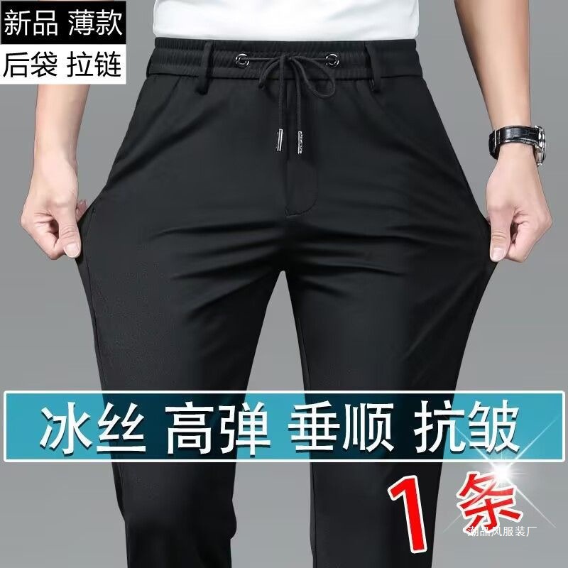 元のメーカーの男性のカジュアルなズボンの弾力性の青年の男性の新型のストレートビジネスの夏の氷の糸は熱を免除してしわのズボンに抵抗します。