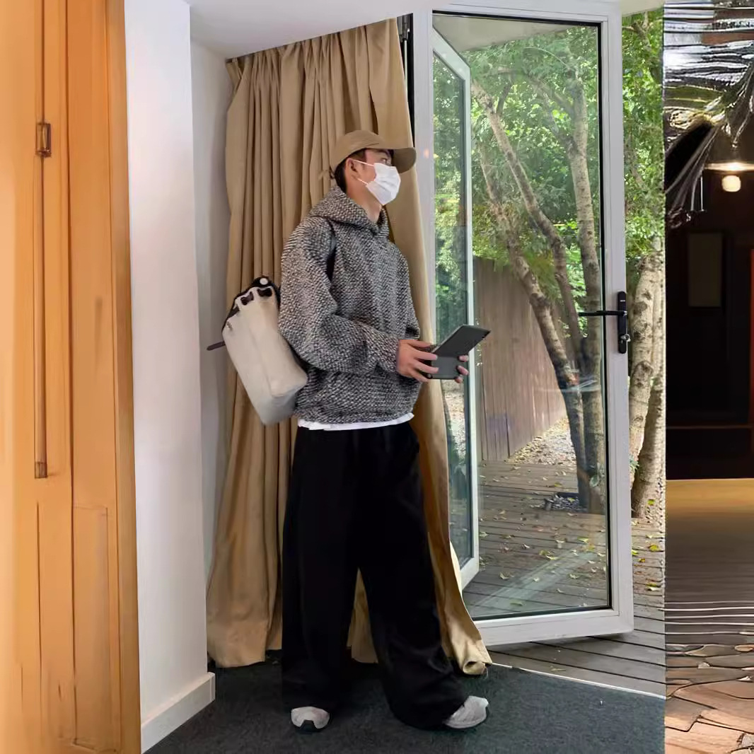 ワッフルズボン男性2024秋のファッションブランドはゆったりしています。