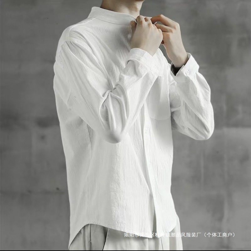 春と秋の純色の長袖のシャツの男性の薄いタイプのカジュアルな寸のシャツの青年の夏のゆったりしている綿の麻のシャツの男性のコート