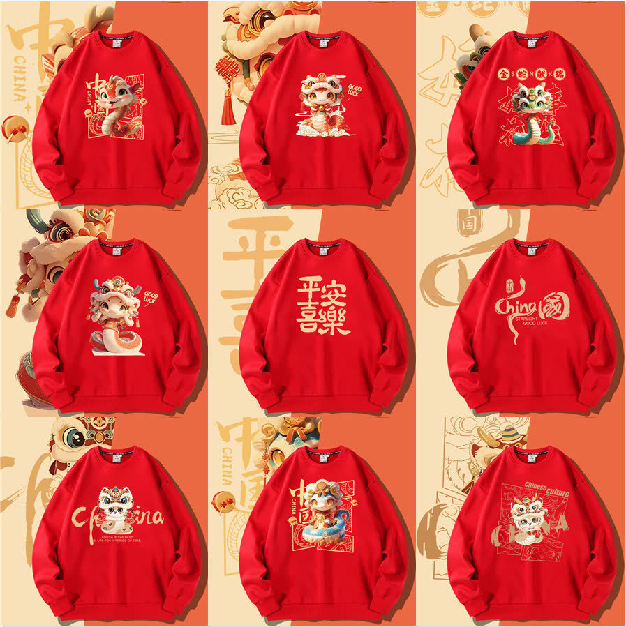 2025本命年華綿加毛衛衣国潮赤色服男女蛇年長袖丸襟ゆったり服