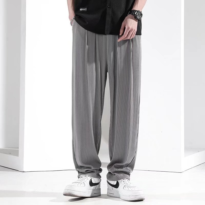 氷の夏の薄い糸のズボンの男性のゆったりしたファスナーのまっすぐな筒の修身のカジュアルなズボンの弾力性の男性の運動の卸売り