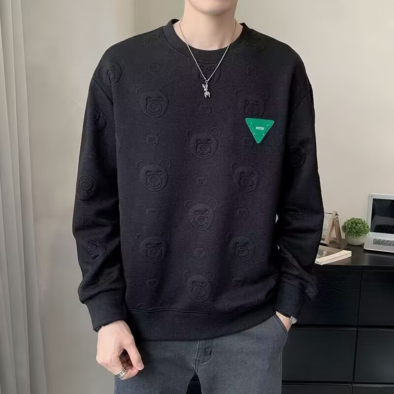 ジャカード春と秋の新型丸首ジャカードのゆったりとしたファッションカジュアルな長袖メンズコート