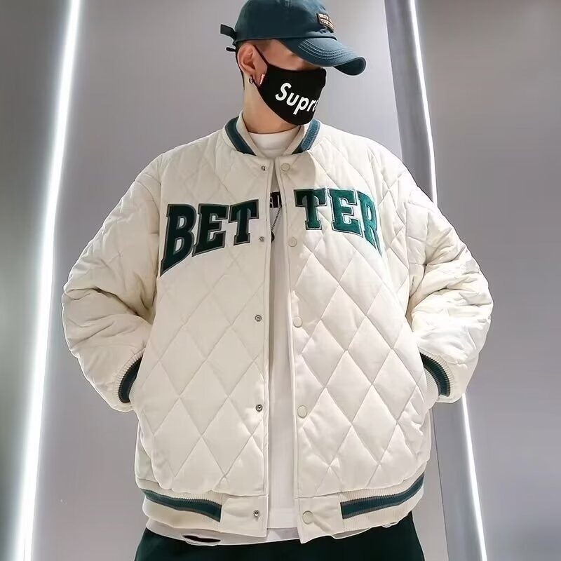 2024新型菱形ベルベットカップル野球服男女潮牌綿服冬コート韓国版はゆったりしている