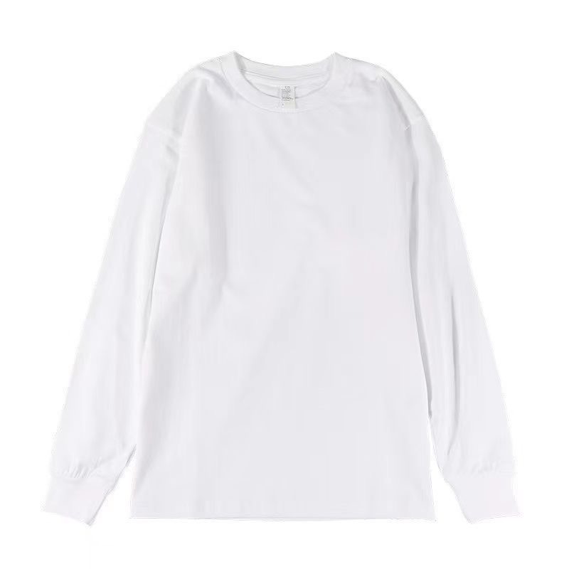 重ポンド220G純綿百合厚実上着男女新作春秋ファッションカジュアル長袖純色tシャツ