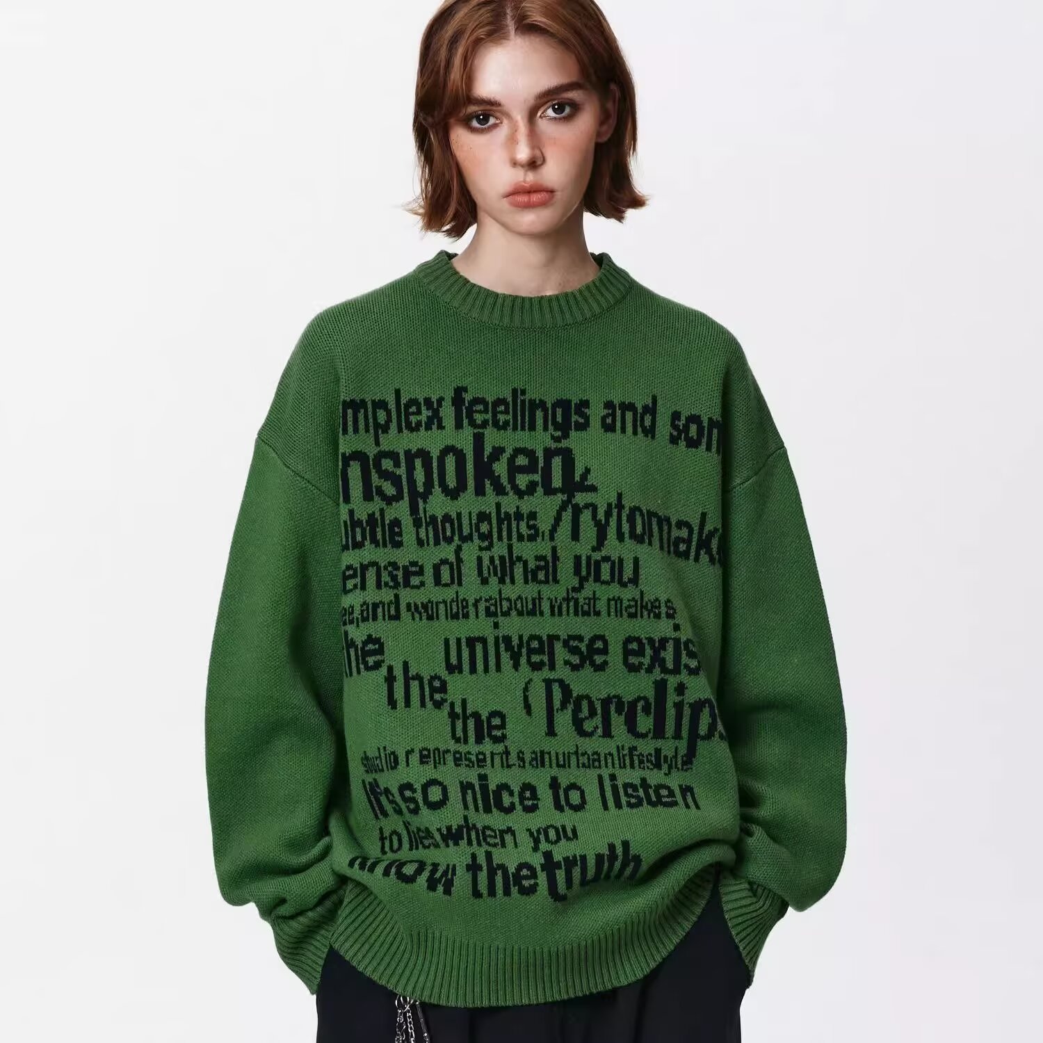 国潮アメリカ文字中性風セーター男女秋冬怠惰街頭ゆるいカップルニットセーターコート