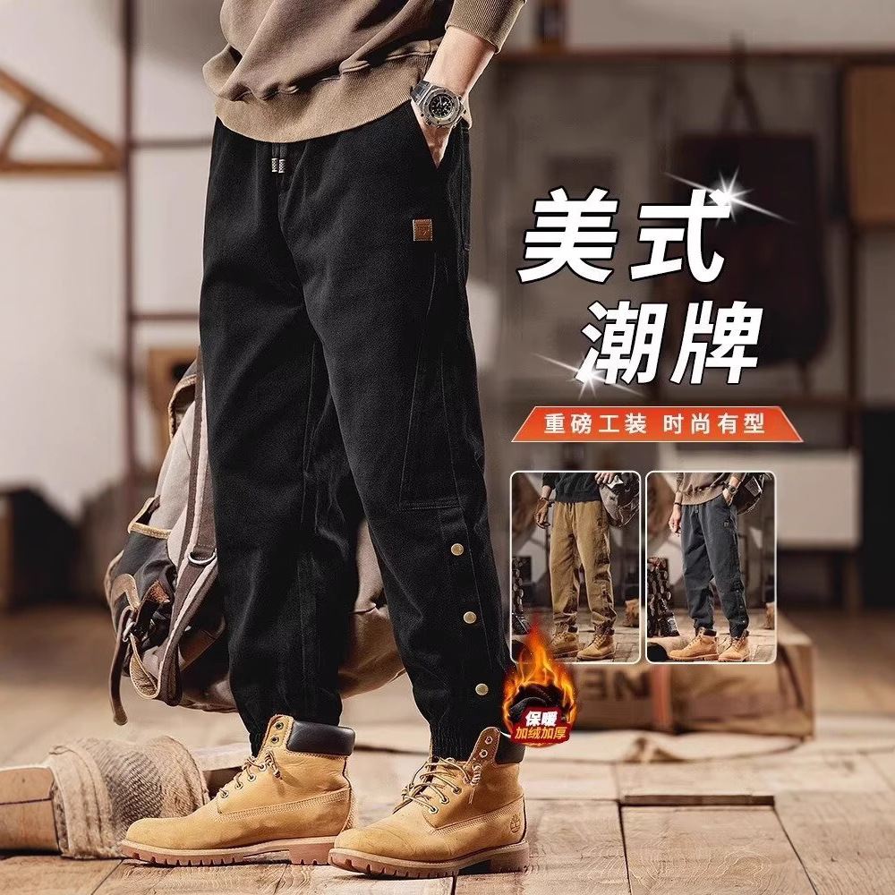 アメリカの重いポンドの工装のズボンの男性の金の2024の新型の秋冬のゆったりしている潮のブランドのハレンの束の足のカジュアルな男性のズボン