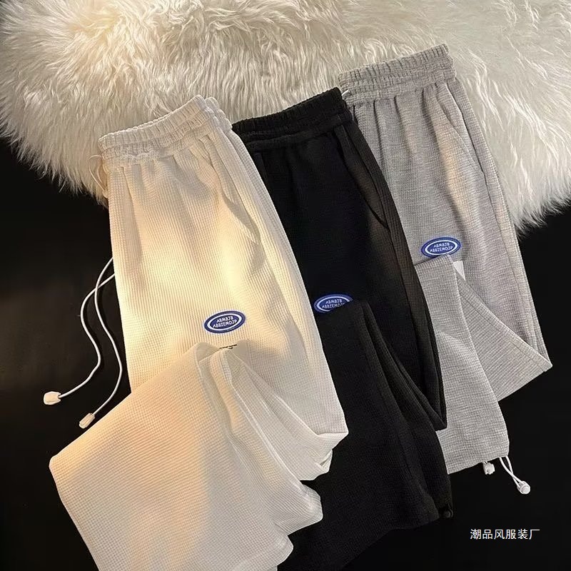 元のメーカーのワッフルの格衛のズボンの男性のゆったりしている広脚のまっすぐな筒の運動のカジュアルなズボンの百合の復古の足首のズボンの男