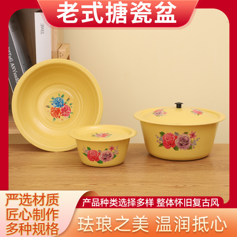 ボウル直供給洗面器エナメルボウル豚油洗面器増粘エナメル洗面器昔ながらの洗面器手洗いメーカー蓋付き