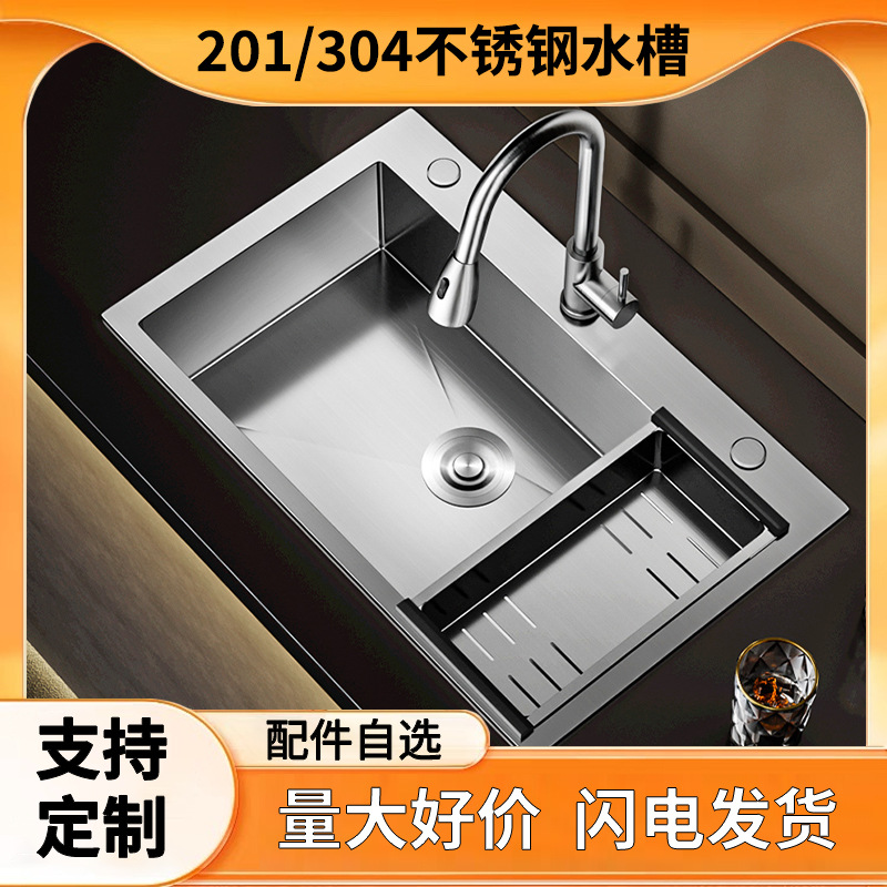 304 ステンレス鋼の厚みのあるキッチンシンク大型シングルスロットエンボス加工多機能和風家庭用シンクシンク