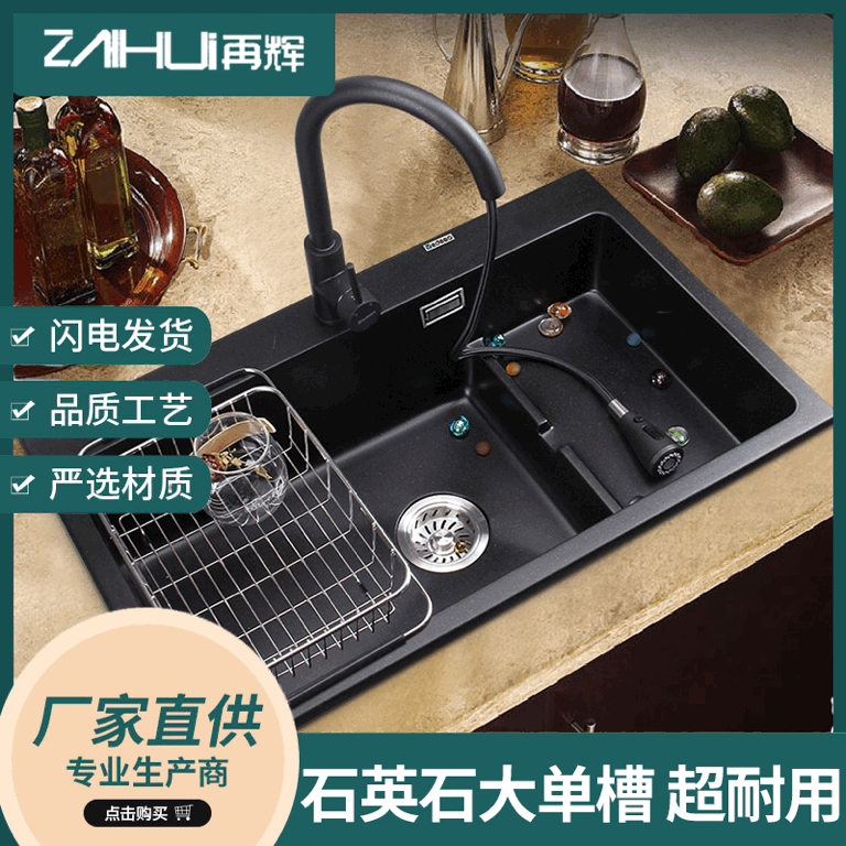 家庭用石英石水槽単槽キッチン洗面器洗面器洗面器単階段増厚台下手作り単盆