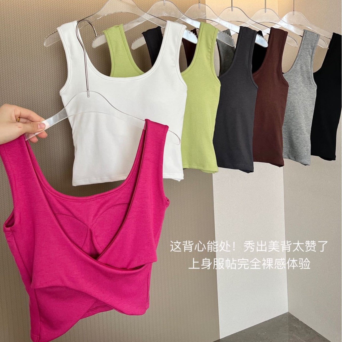 純欲風掛け首美背ストラップ小ベスト春夏新作セクシーギャル外着胸パッド付トップス9076 #
