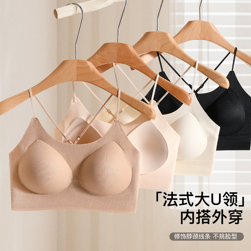 早春新作快適スチールリングなし空気固定カップ無痕美背セクシークロス小ストラップ胸ブラジャー