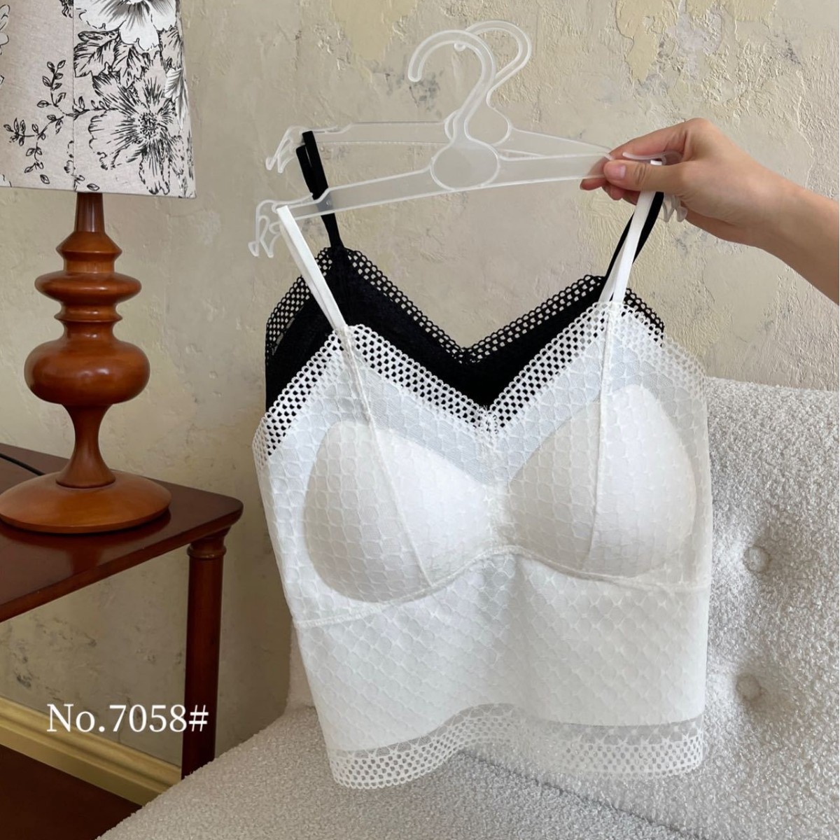 7058 # 千鳥格レースストラップベストセクシーvネック固定胸パッド