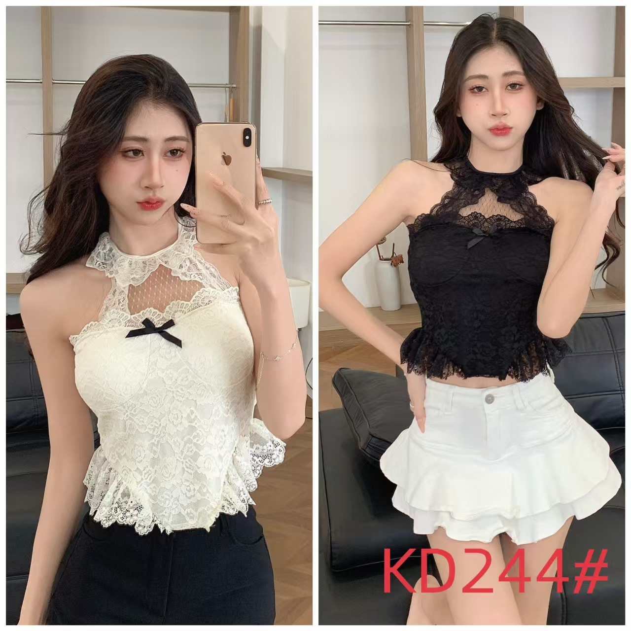 Kd 244 # 十三行早春新作純欲風蝶結びレース首掛けチョッキギャルノースリーブ底付き上着