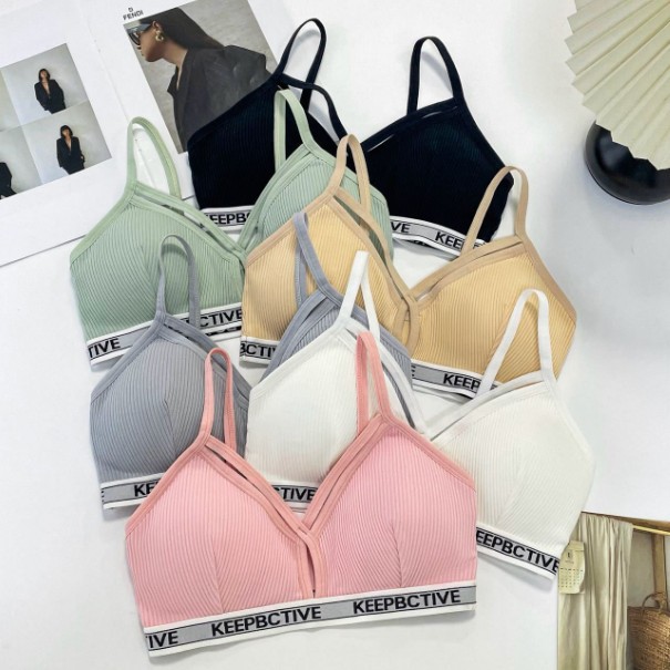 3609 # フランス式セクシーな透かし彫りクロスvネック三角カップ下着ファッション少女アルファベット運動スチールリングなし胸