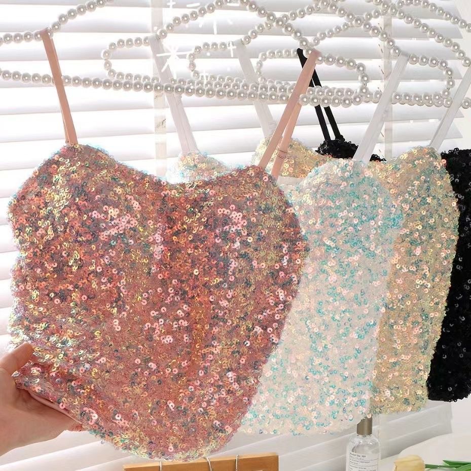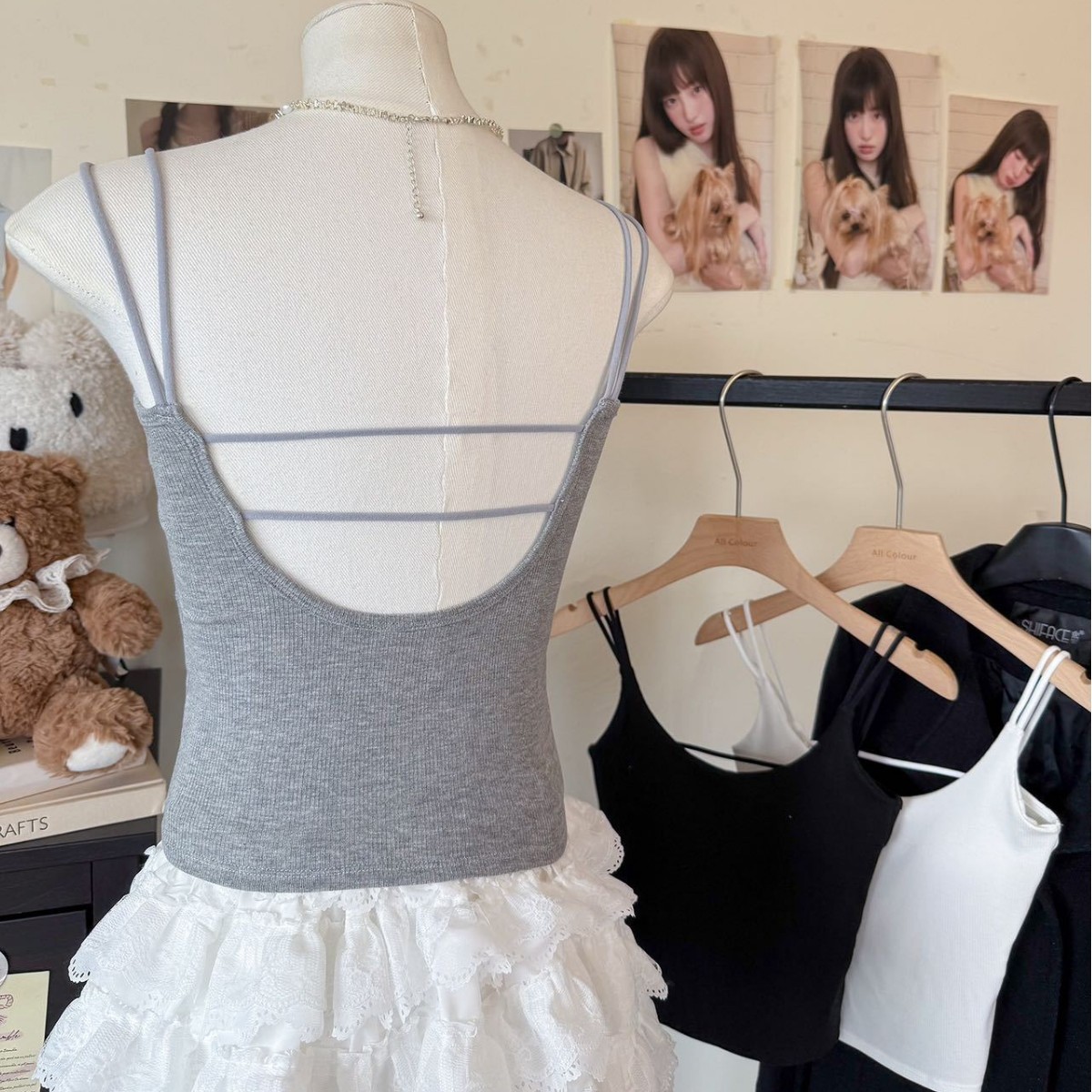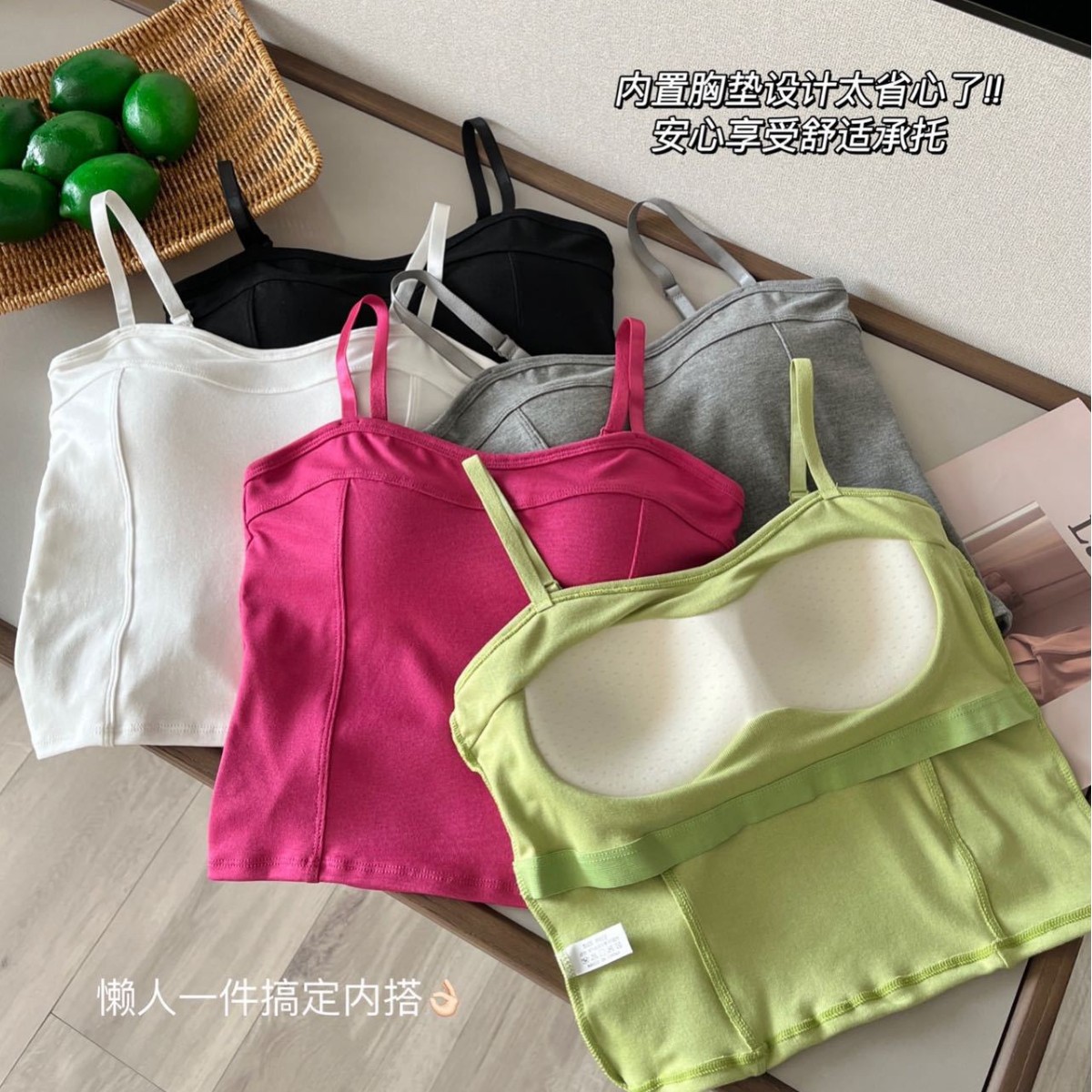 352 # 肩ベルトu型透かし彫り美背小ストラップベスト純色系内に減齢一体式固定胸パッド