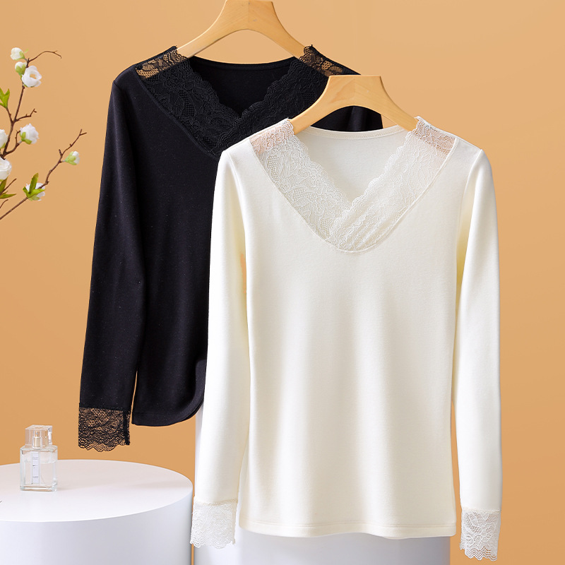 秋冬両面磨毛保温長袖下着セクシーレースvネック