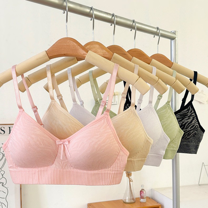 866 # 丸みを帯びた新型の甘い蝶結びのバックボタンのブラジャー一体固定胸パッドの肩ベルトは下着を調節できます。
