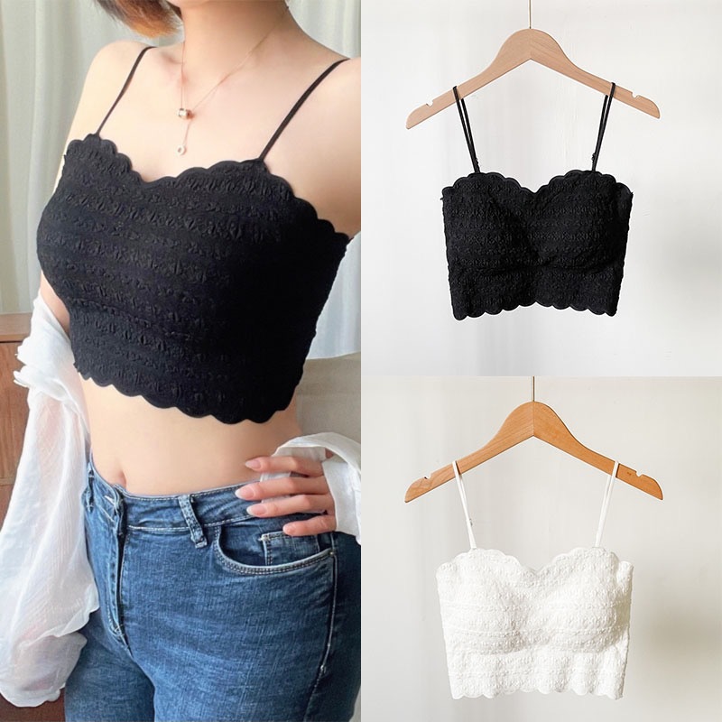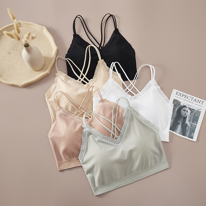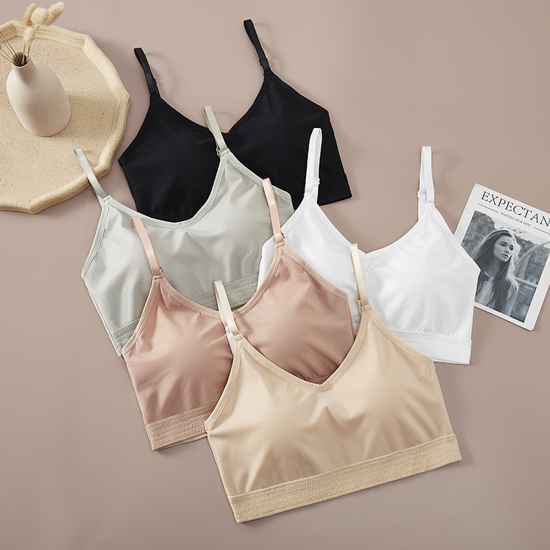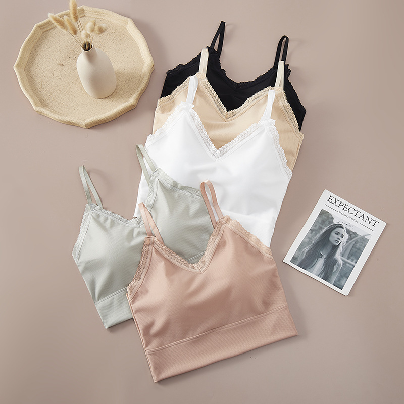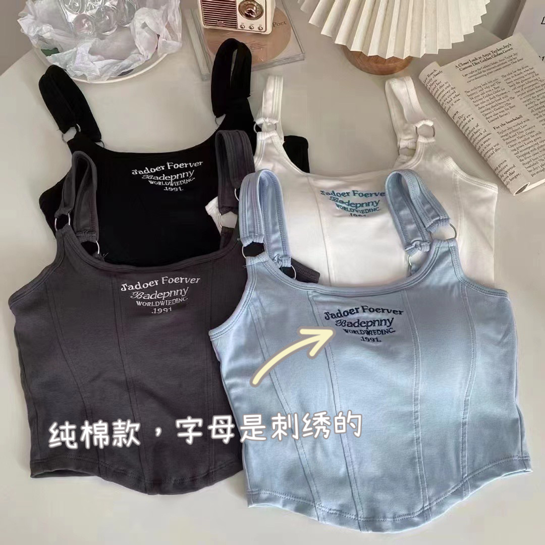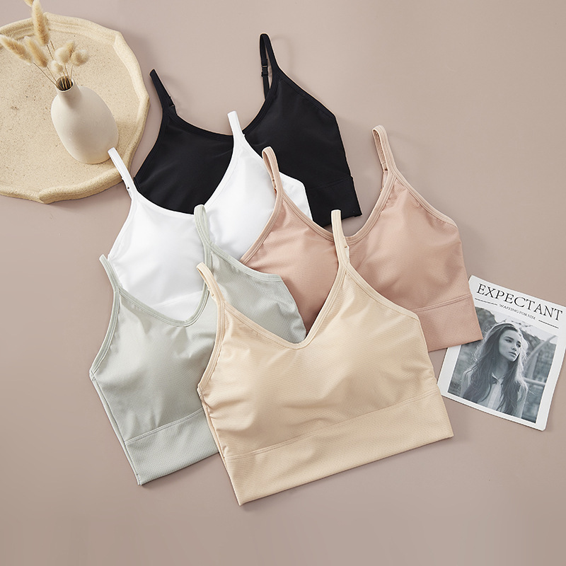9028 # 韓国版純色の新しいストラップベストの女性は胸パッドを持っています。