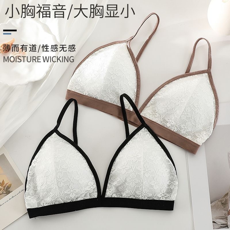 フランス式の美しいセクシーな色合わせのレースのブラの甘い薄いタイプの三角の杯の小さい胸のブラジャーの鋼の輪の美背の下着がありません。