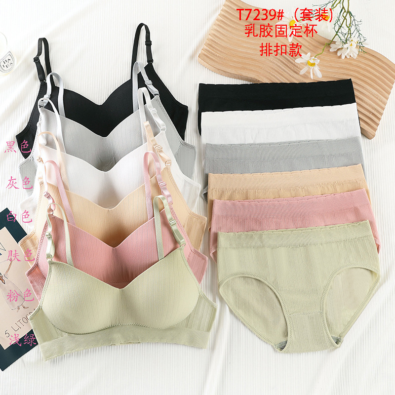 シームレスストラップ固定カップ美背スチールリングなし胸パッド抹胸大きいサイズバックバックルスポーツ下着レディースブラジャーセット