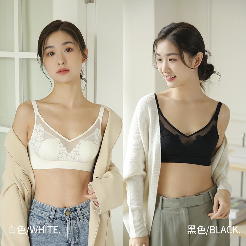 新型ストラップレースvネック美背ラテックス一体式固定カップは胸を巻いて、スチールリングのない通気性のある女性のブラジャーです。