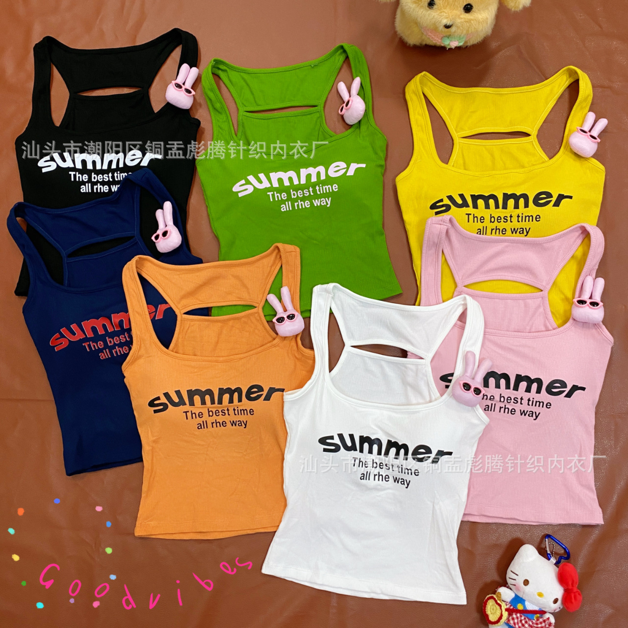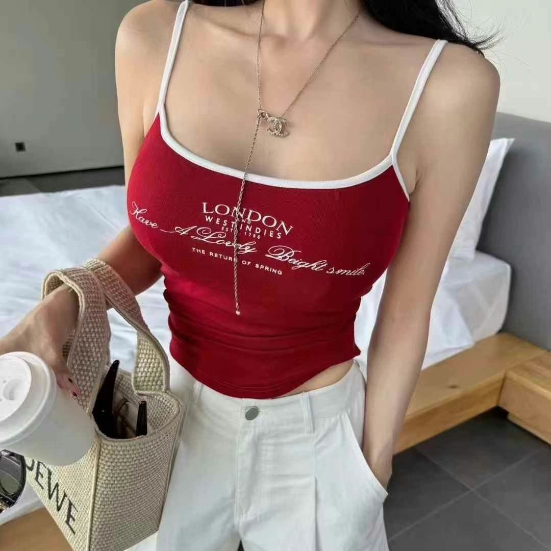 2815 # 韓国ホットガールレタープリントコントラストカラーベストアメリカンレトロスポーツスタイルカジュアルインナーウェア痩身トップ