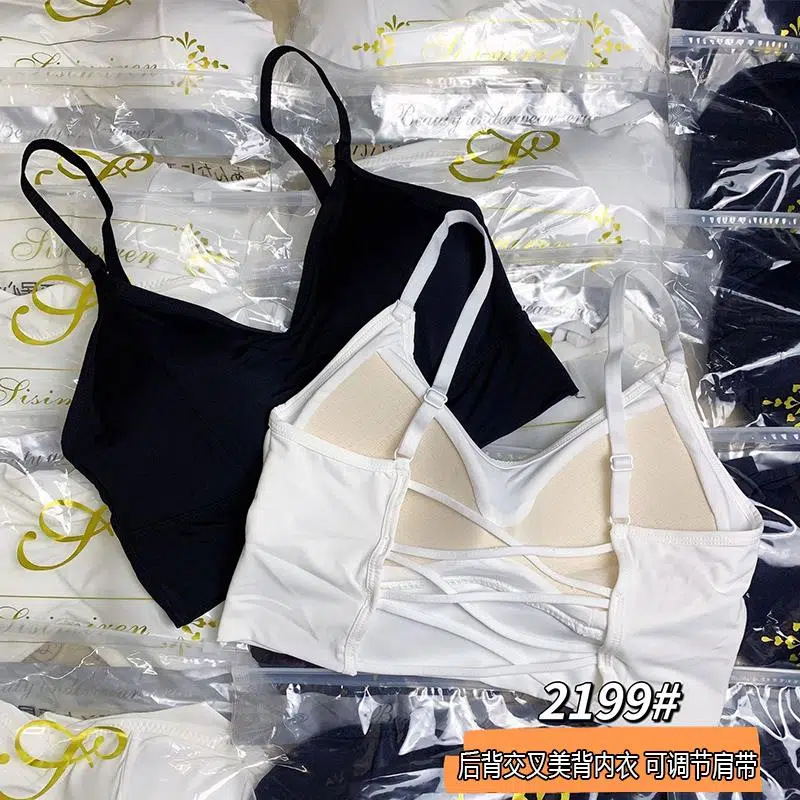 2337 # クロスバックデザイン、美しい背中キャミソール、胸パッド付き、二重層不浸透性カップ、快適な胸縮小下着