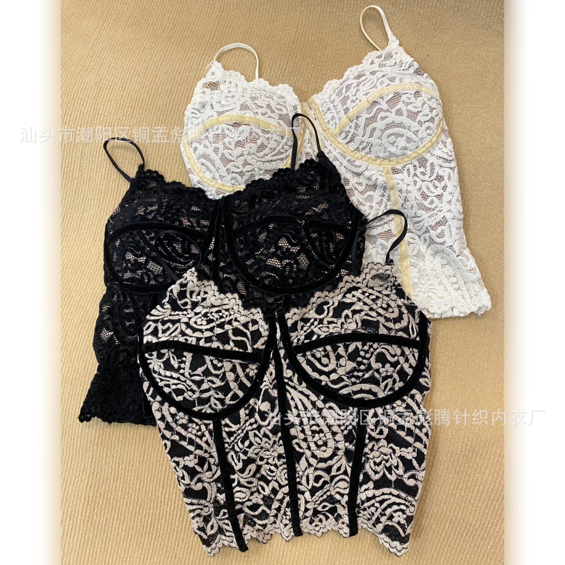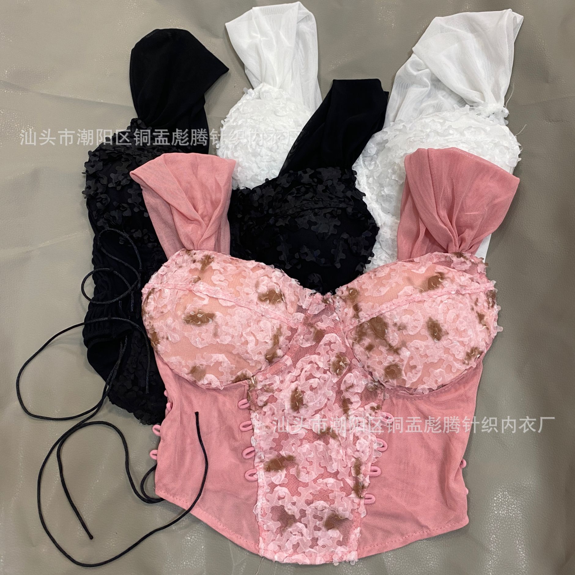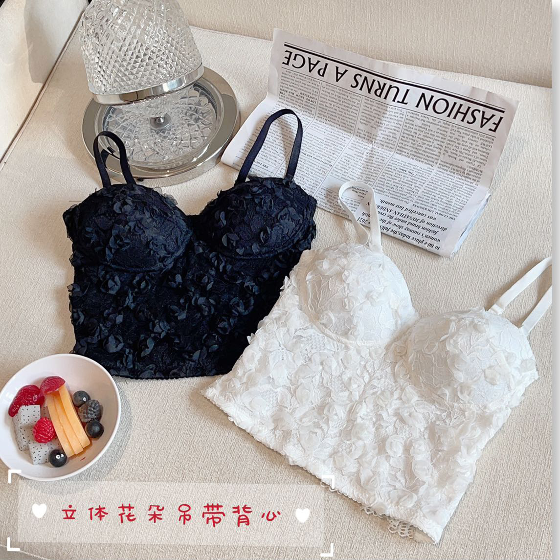 春の新型シンプルな立体花純欲ストラップチョッキフランス式固定杯セクシー低胸美背巻き胸女