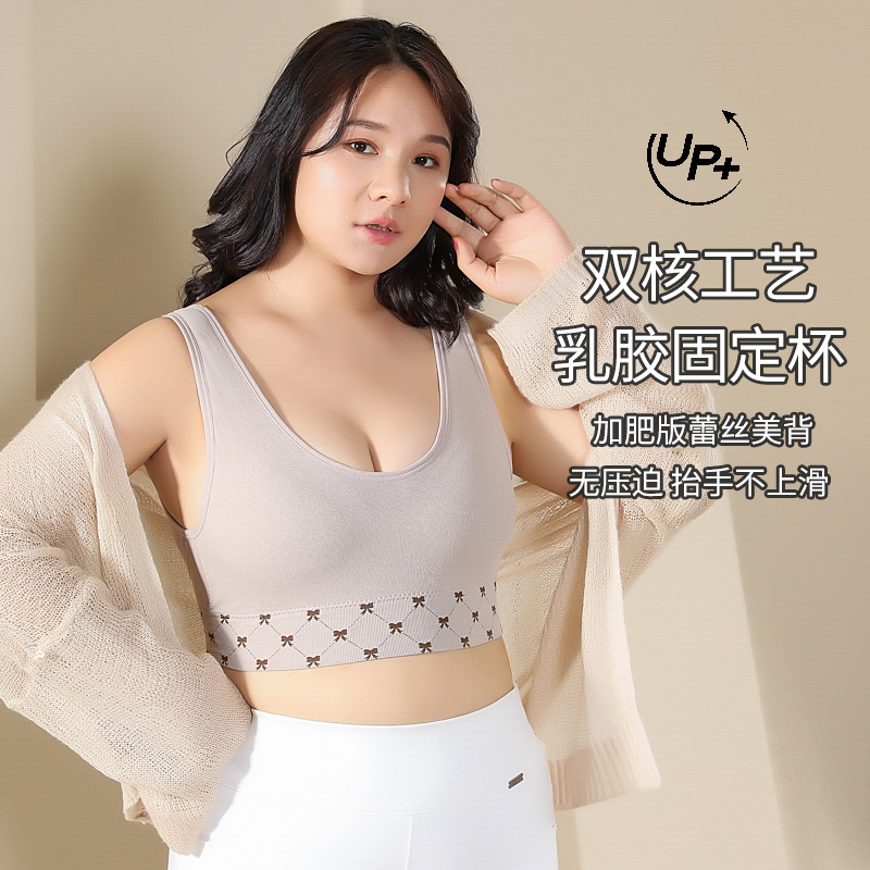 新型加肥固定ラテックスカップベスト女性レース深v美背高弾通気上托無痕無鋼輪包