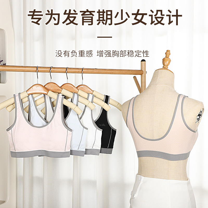 少女の発育期の下着の学生のベストを合わせて快適に胸を拭きます。