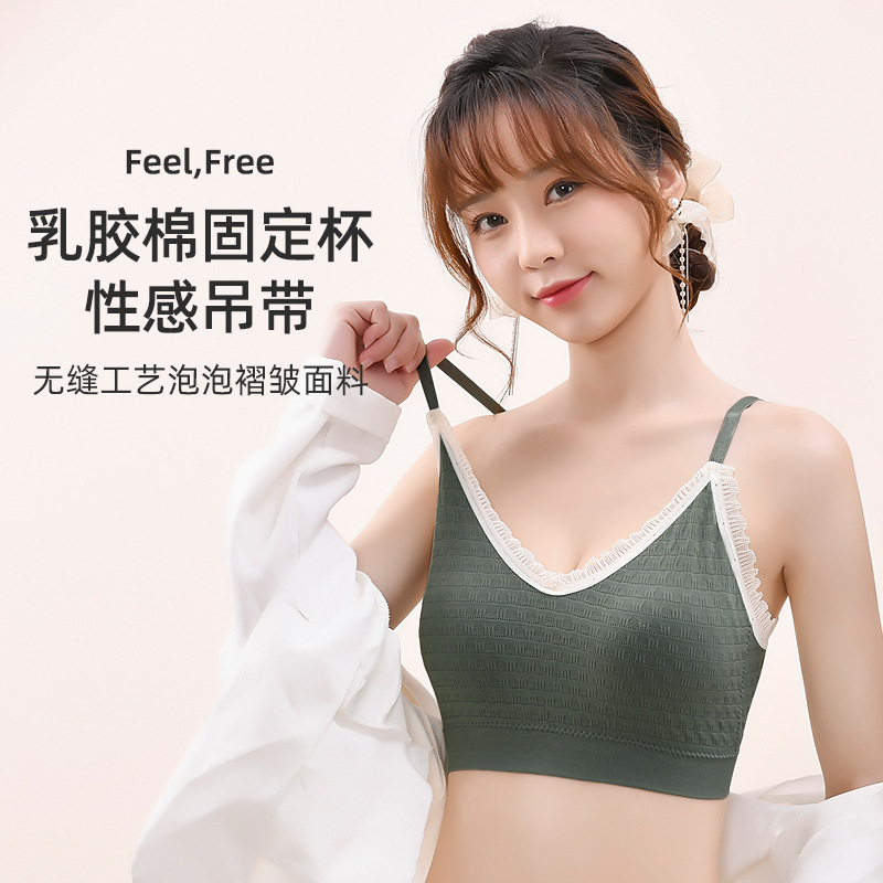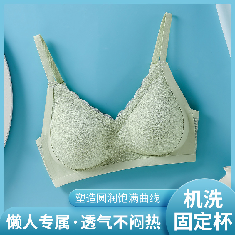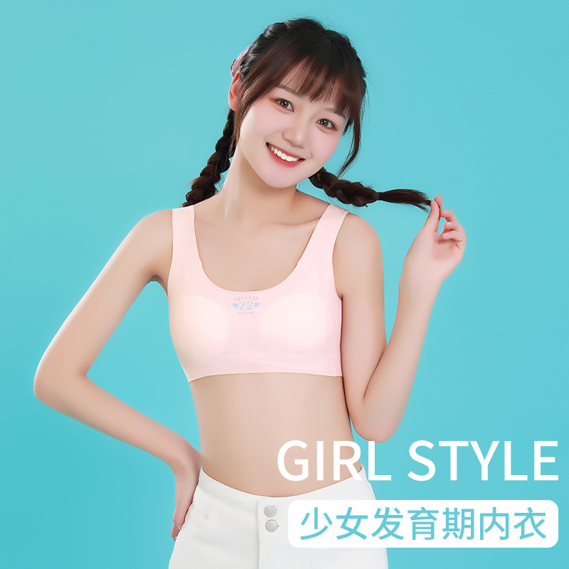 発育期の少女のスチールリングなしの固定カップラテックス下着はシームレスに色の広い肩に衝突します。