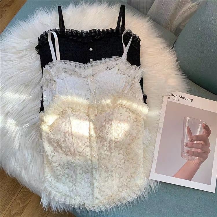 真珠レースの小さいサスペンダーのベストの女性の甘辛の中で胸のパッドをつけて底のシャツの上着の女性の2022新型を着ることができます。