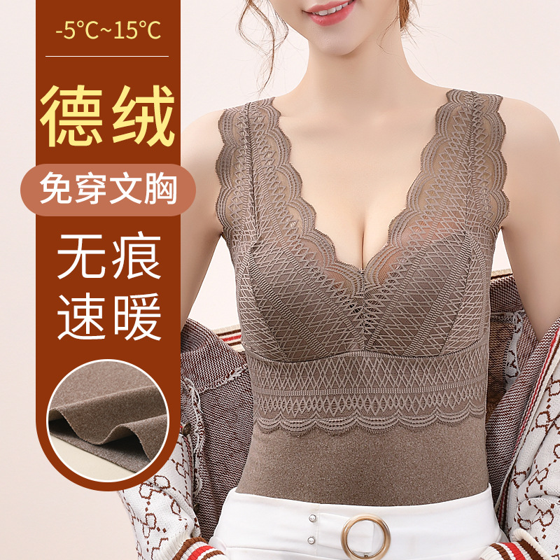1831レースvネック保温ベスト女性無痕軽暖徳パイルシャツ一体式はブラジャー保温服を着用しない
