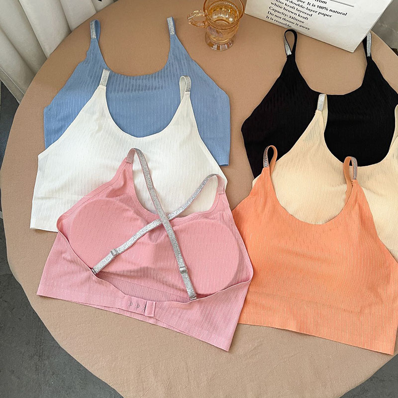 2023新型氷糸ジャカード一枚式無痕下着セクシー銀糸ストラップバックボタンブラジャー