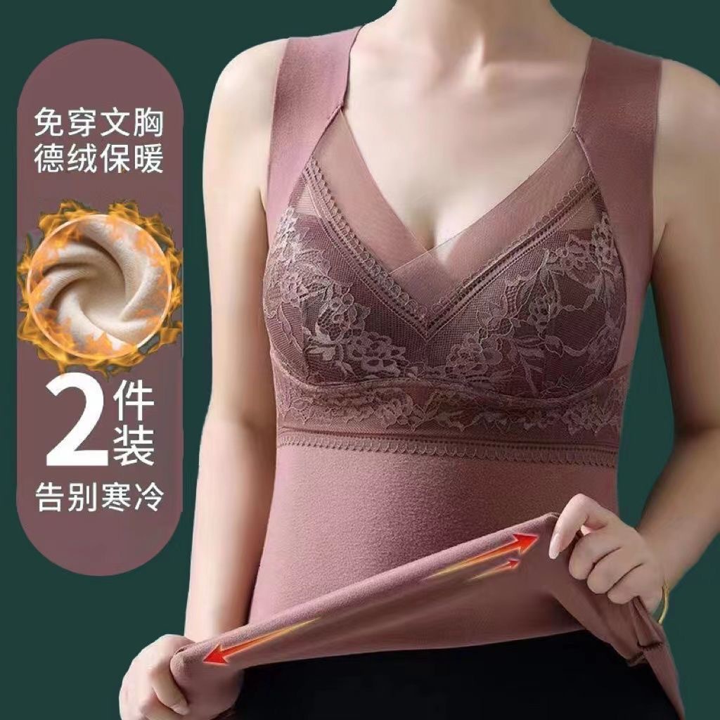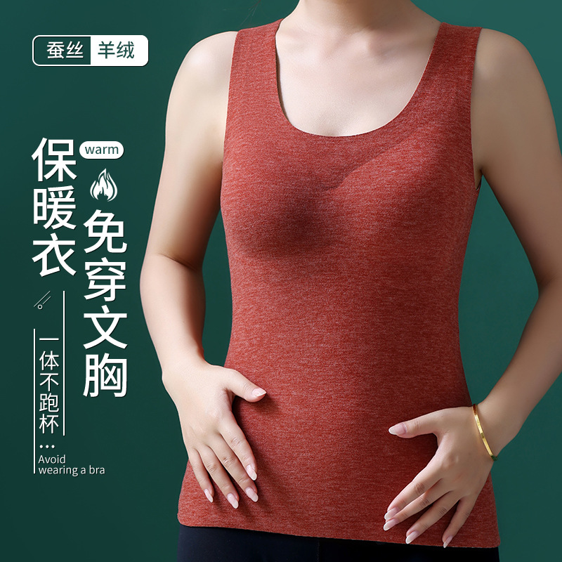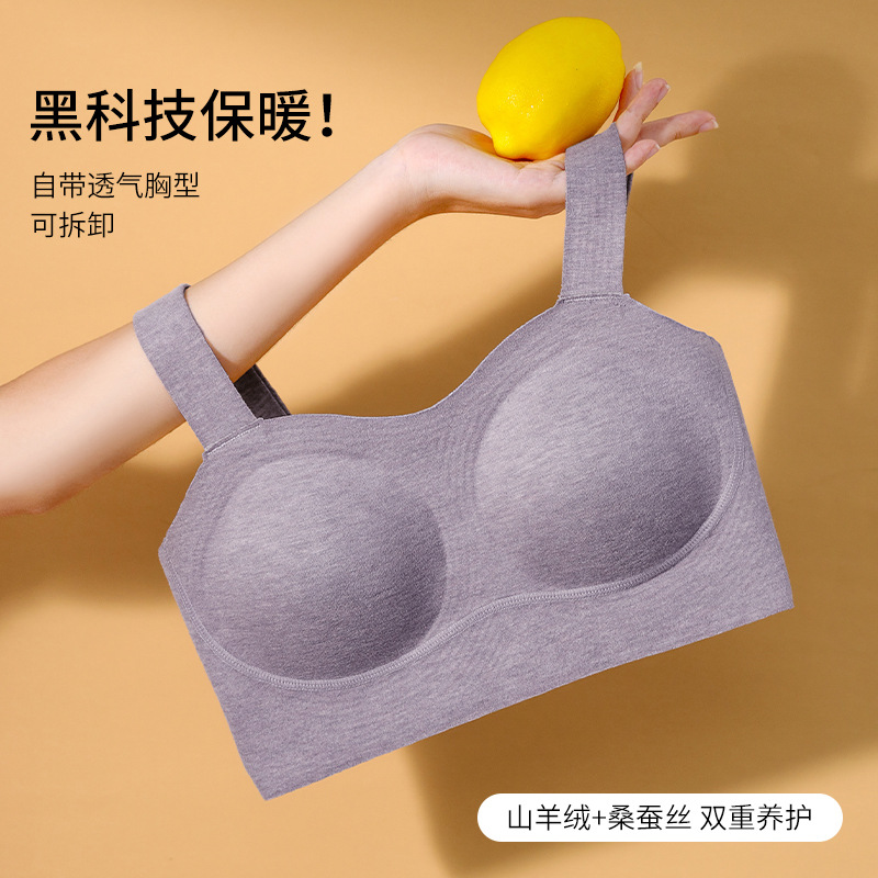 シルクウール保温下着無痕ベスト秋冬にベルベットを厚くして胸パッドをつけてブラジャー保温服を着ないようにする