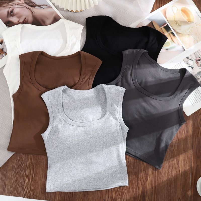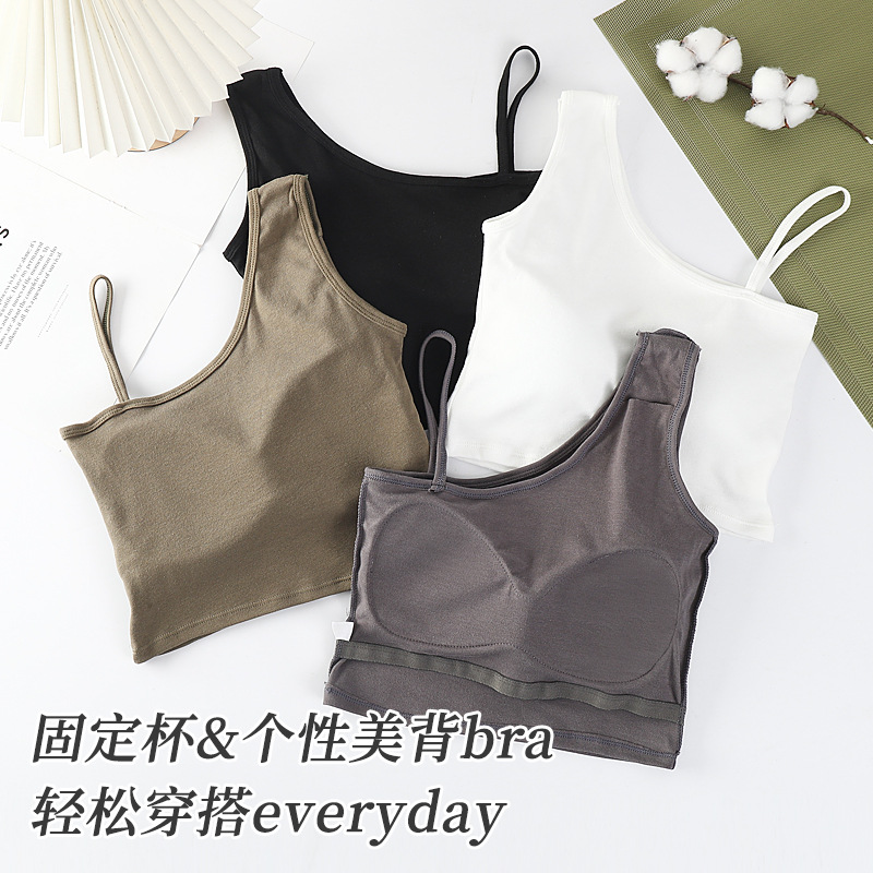 301 # 袖のない上着のベスト女性初秋綿質固定胸パッド純色の中に痩せた胸ベスト女性が見える