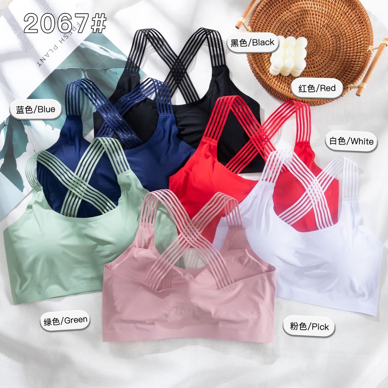 クロスボーダーの新型銀糸肩ベルト運動ベスト女性氷糸無痕純色胸u型美背ボタンブラジャー