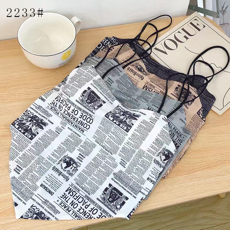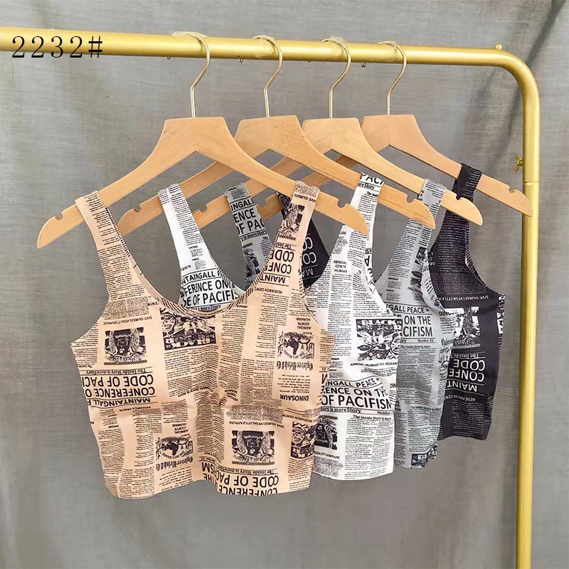 Insプリント新聞のストラップの跡がなくて、胸のパッドのギャルの不規則な底の上着があります。