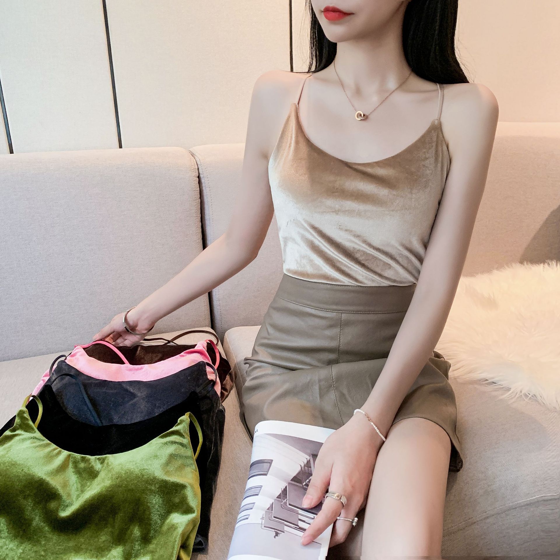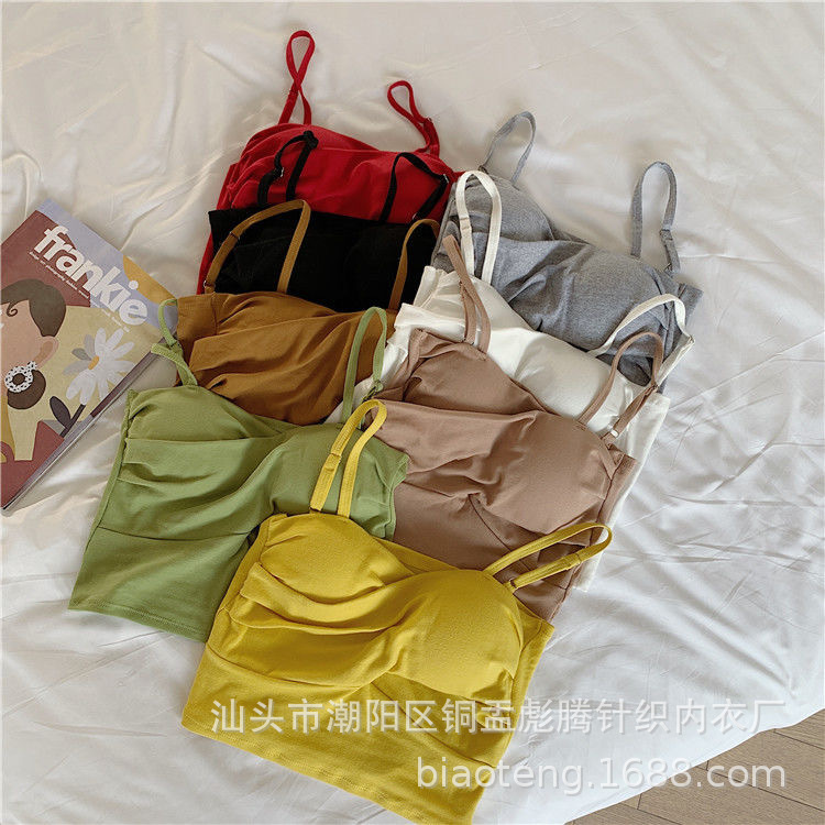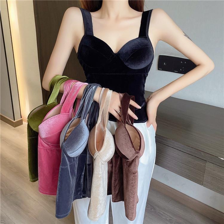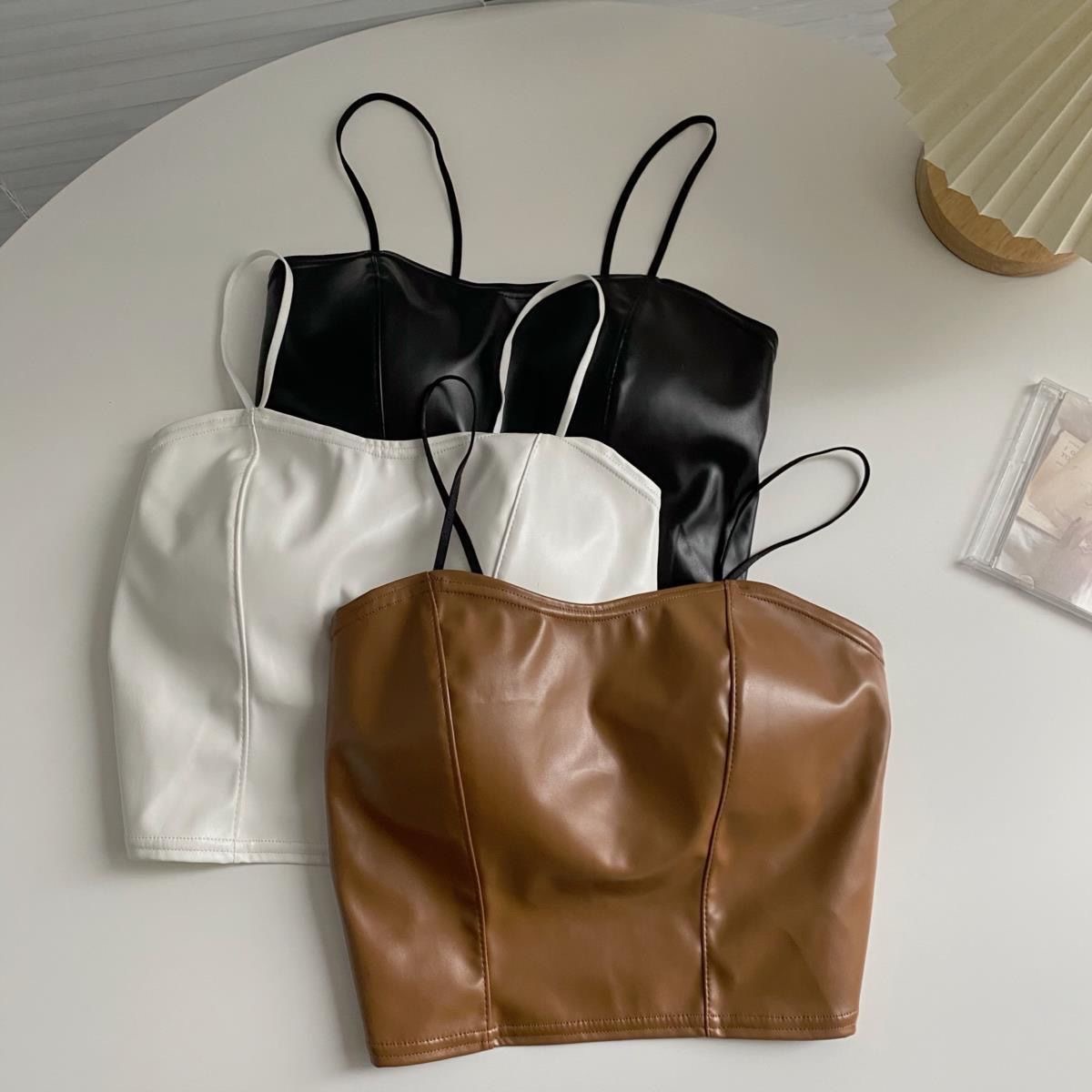 香港風ストラップベスト女性気質高級美背下着修身ショートタイプのボトムシャツは胸パッド付きの皮質上着が湿っています。