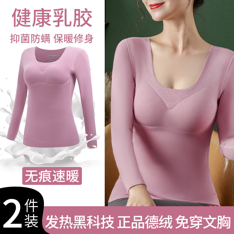 冬の保温下着の徳絨速暖さんの長袖の保温上着の女性の丸首の修身はブラジャーの底のシャツを着ないでください。