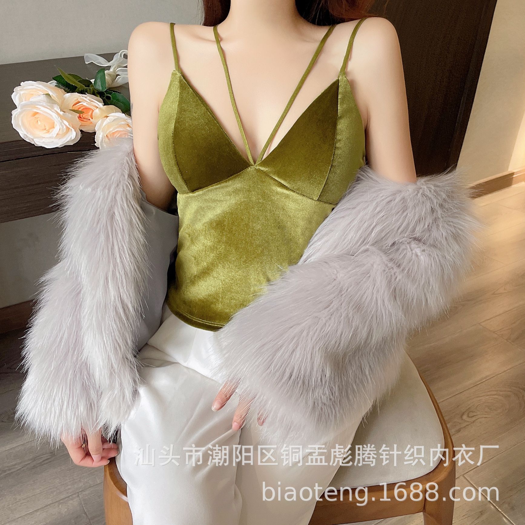 秋の名媛風の金のベルベットのストラップのベストの女性の注意機の交差の美背の露背のギャルは底を打って上着を着ます。