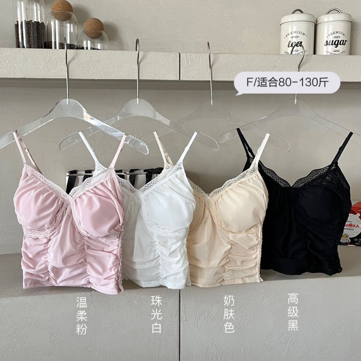 8704 # フランス風純欲風しわレースネット美背胸夏の甘いvネックストラップ