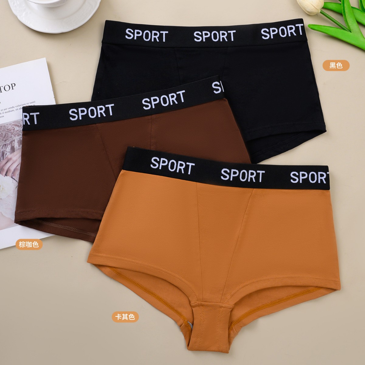 コットン無地下着、コントラストレターウエスト、シンプルガールズブリーフ、トレンディな個性スポーツボトムショーツ