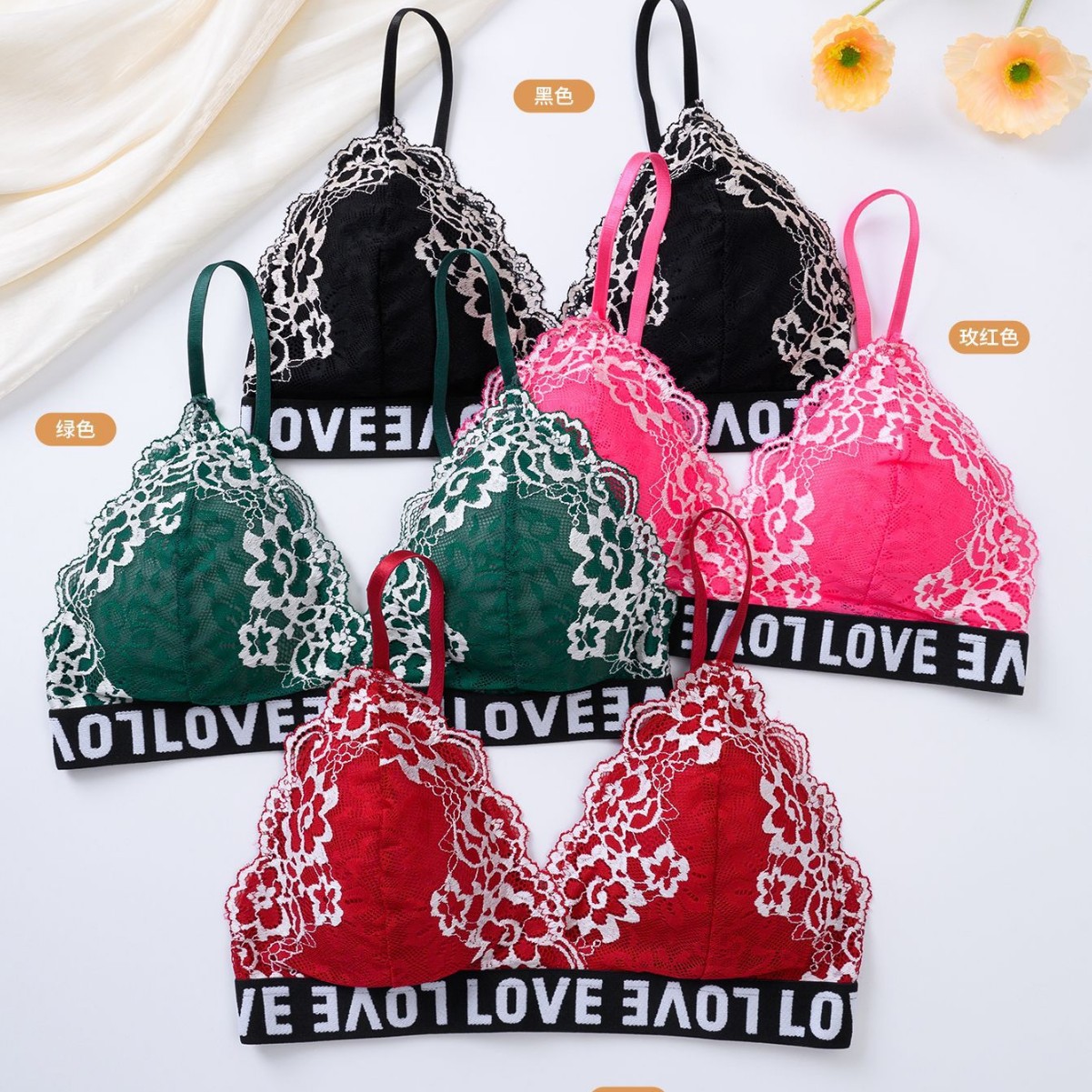 8025 # 2色レースレターエッジバックボタンブラジャーフレンチセクシーなノンワイヤーブラジャー調節可能なショルダーストラップ付き